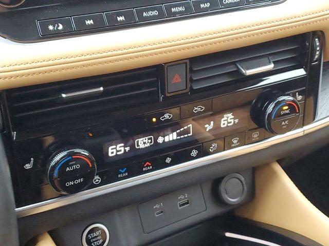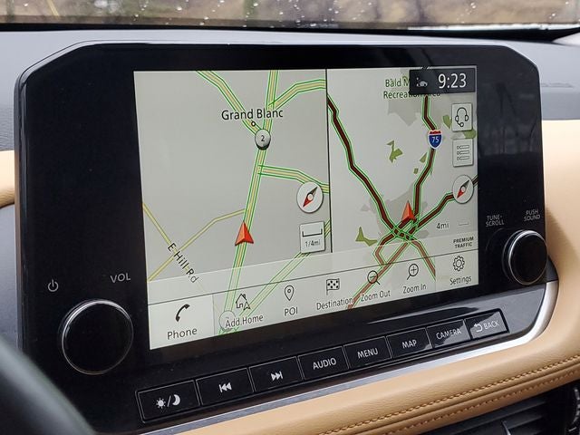 - Radio: AM/FM NissanConnect w/Navigation -inc: Nissan door to door navigation w/3D building graphics and satellite imagery featuring online POI search and online premium traffic information, SiriusXM Traffic, SiriusXM Travel Link, 9" color display w/multi-touch control, NissanConnect featuring Apple CarPlay and Android Auto, SiriusXM Satellite Radio, 2 illuminated USB connection ports (1 type-A, 1 type-C), Bluetooth® hands-free phone system, streaming audio via Bluetooth® and hands-free text messaging assistant